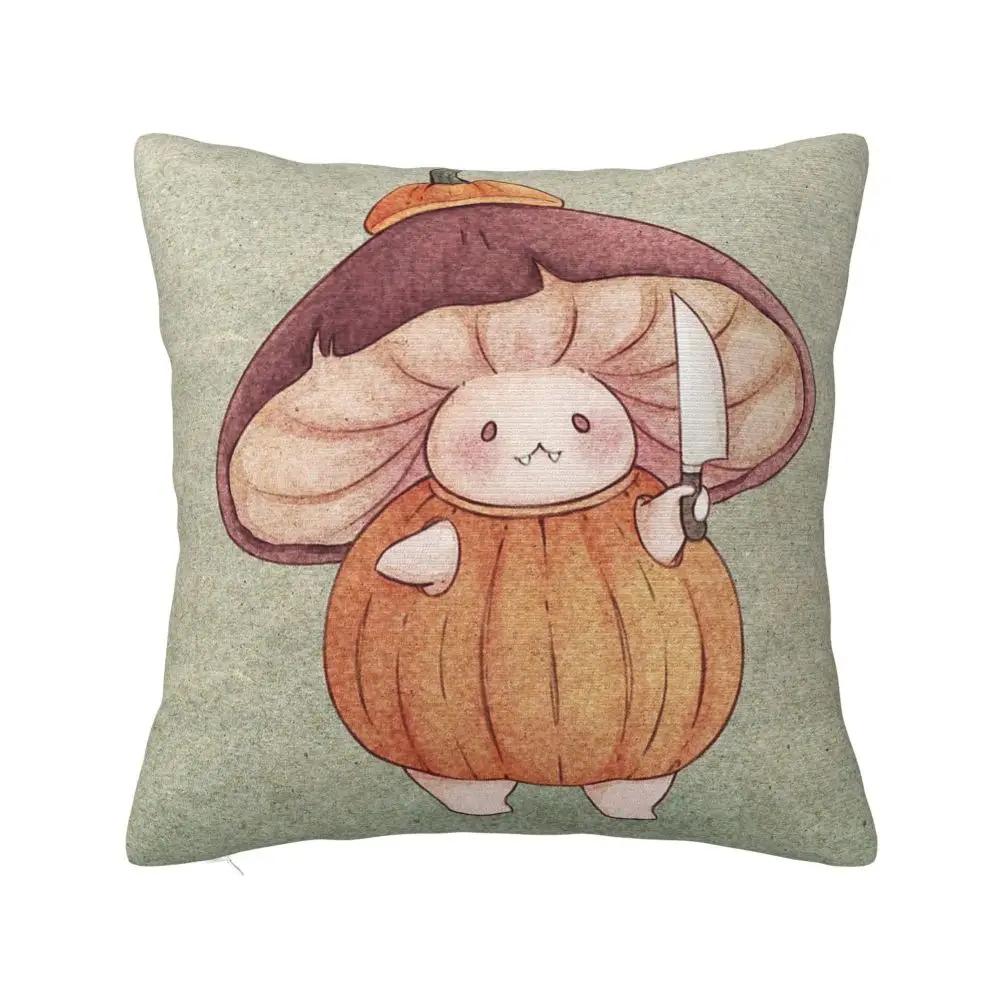 Pumpkin Halloween Mushroom Knife Square Pillowcase Polyester Linen Velvet Printed Zip Decor Car Cushion Cover